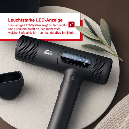 Solis Haartrockner, Temperaturkontrolle, LED, 4 Einstellungen, 1600 W, 350 g