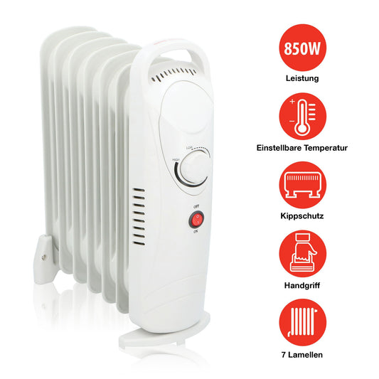Alpina Öl Radiator, 2 Stufen 850W 7 Rippen Thermostat Kipp- & Überhitzungsschutz