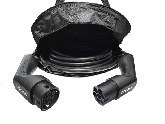 Deltaco EV-Ladekabel, Typ2 auf Typ2, 16 A, 11 kW, 3-phasig, 5 m, Tasche & Halter