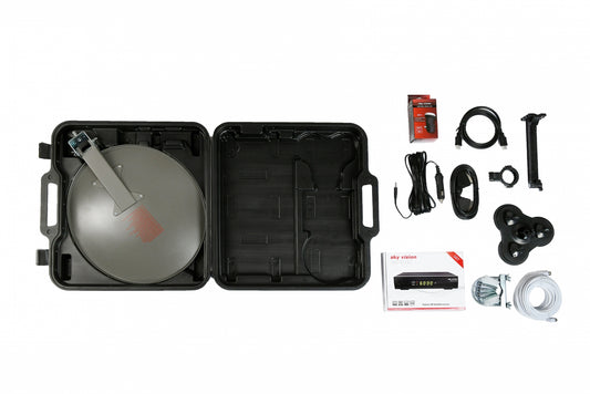sky vision Camping Koffer Satellitenanlage, Spiegel, Receiver, Single LNB, Kabel